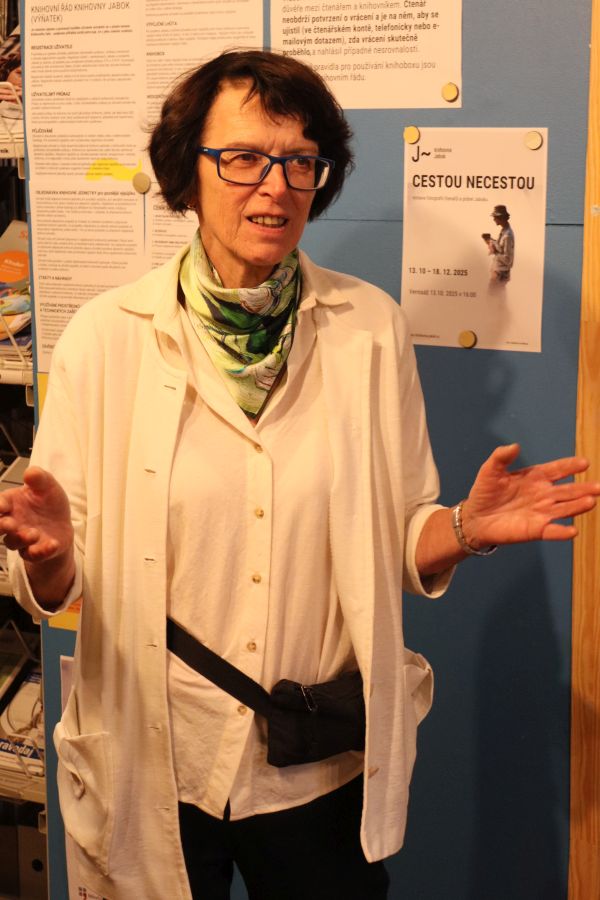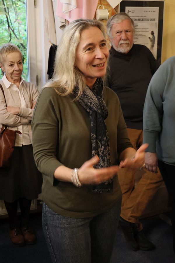 Fotografie z vernisáže výstavy Cestou necestou 2025. Vernisáž se konala 13. října 2025.